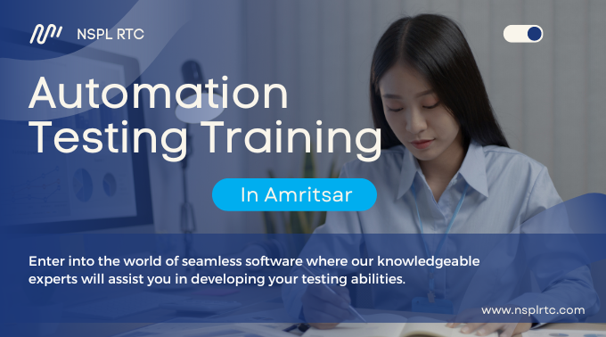 Automation Testing Training in Amritsar Unlock Seamless Testing Excellence with our Automation Testing Training in Amritsar where our industry-leading program and mentors help you improve your skills as an automation tester. You can gain hands-on experience, master top-notch tools, and become a sought-after testing expert in just a few short weeks. Make sure you join us for your career transformation today! https://nsplrtc.com/automation-testing-professional-training-amritsar.php #automationtestingtrainingamritsar